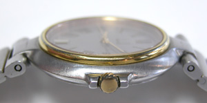 dunhill電池交換メンテナンスです。金色のベゼルが際だつデザイン。