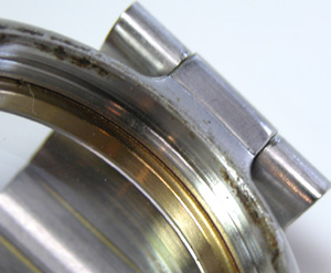 竜頭の洗浄は完了しましたが錆びて欠けています。この程度は使用に問題は無いでしょう。でも錆びた部分に穴が空くと危険。穴が空くまで、もう1mmもありません。