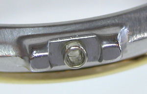 これまた危うい構造ですね・・・折れそう。また肉厚も薄いので僅かな摩擦でピンが留まってた訳です。これはバックルから両サイドに突起が突き出たタイプならでは。この構造で1本のピンで突き通していたら・・・強度不足ですね。(v_v)