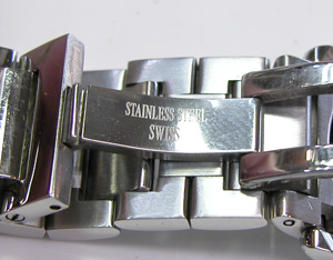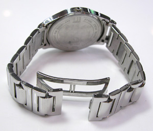 ステンレス無垢バンドに両開きバックル。