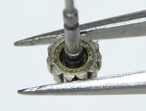 これがムーブメント、裏蓋パッキンは変形パッキン。こういうのは我々では入手出来ませんから交換は不可です。