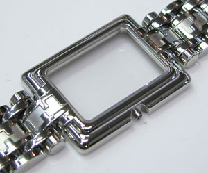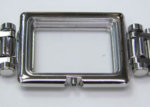 ステンレス無垢バンドに両開きバックル。
