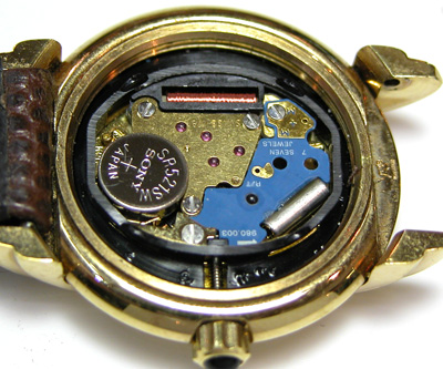 綺麗になったケースにムーブメントをもどして電池格納部をチェックします。