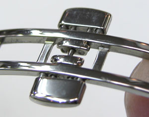 両開きバックルでCリング式でコマが繋がっています。