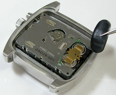 綺麗になったケースにムーブメントを戻して電池格納部をチェックします。