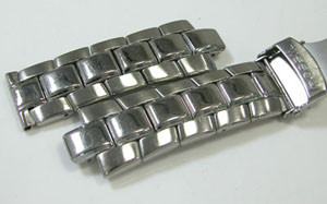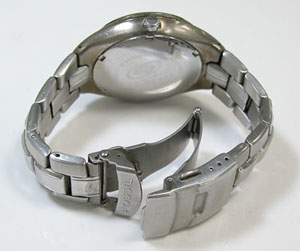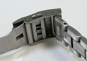 ステンレス無垢バンドに三つ折れダブルロック。