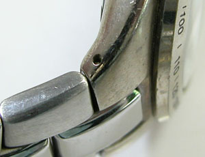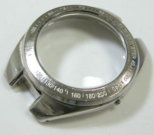 おっと、洗浄でベゼルの目盛が消えましたが、このての腕時計は文字の溝が浅いので塗料が乗らない。