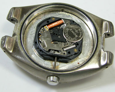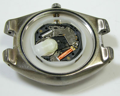 綺麗になったケースにムーブメントを戻して電池格納部をチェックします。