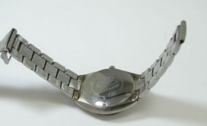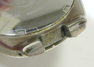 裏蓋はスクリューバックですがベルトのカーブが強すぎて外さないと工具が使えないタイプ。
