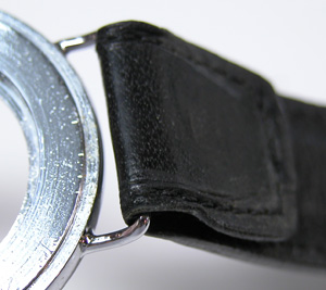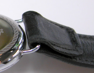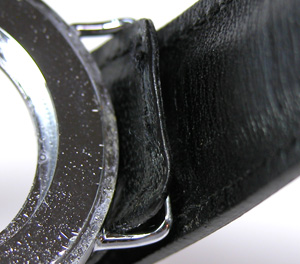 くぐらせてあるのみ。革ベルト芯に金属の板バネが入っています。