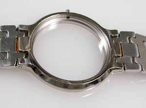 ケースの洗浄は終わってツヤが出たところで、ガラスを装着。
