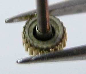 順番が逆ですが電池格納部はこの程度でしたから何とか動きました。これが写真でいう電池格納部の左奥。ここに歯車が顔を覗かせていますから底にまで液漏れの粉が及べば拭き取る程度では動かないのでOHとなります。