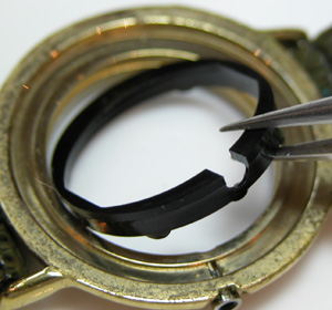 フラットガラスにベゼルが外れる構造。裏蓋は”はめ込みタイプ”