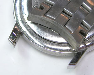 ベルトを外してラグ部のチェック。裏蓋パッキンはプラスチックパッキンです。
