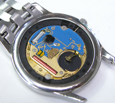 綺麗になったケースにムーブメントを戻して電池格納部をチェックします。