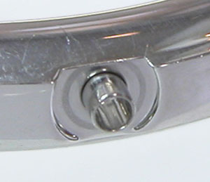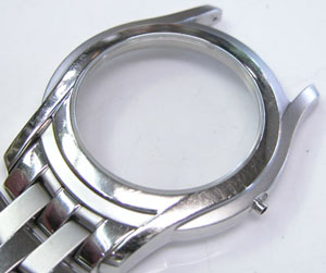 ステンレス無垢バンドに両開きバックル。