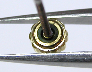 これが取り出した文字盤&ムーブメント。竜頭パイプもチェックします。