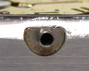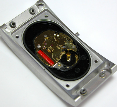 綺麗になったケースにムーブメントをもどして電池格納部をチェックします。