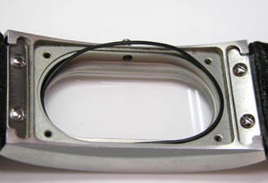 革ベルトですが金属の板で押さえて固定されていますが、この構造から革ベルトとはゆえ既製バンドへの交換は不可。専用となれば革ベルトでも2万円はしますか。
