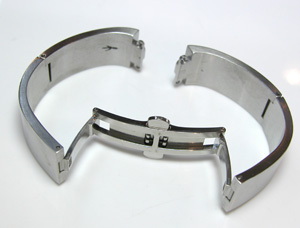 ケースは同じでもベルトはバングルで両開きバックル。
