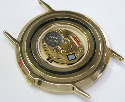 綺麗になったケースにムーブメントを戻して電池格納部をチェックしますが。