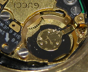 GUCCI 3400FL電池交換メンテナンスです。裏蓋は”はめ込みタイプ”