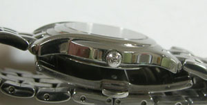 ステンレス無垢バンドに両開きバックル。