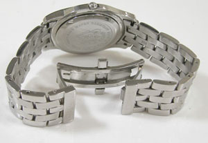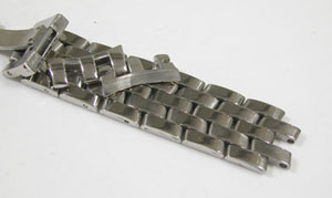 ステンレス無垢バンドに両開きバックル。
