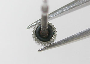 綺麗になったケースにムーブメントを戻して電池格納部をチェックします。こちらも綺麗な状態。