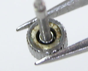 綺麗になったケースにムーブメントを戻して電池格納部をチェックします。