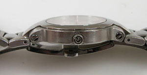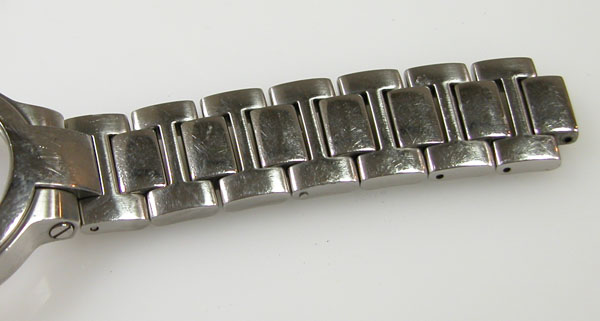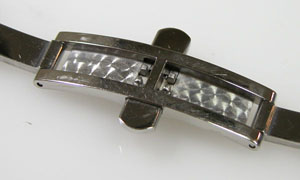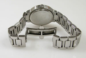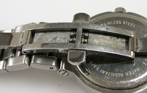 ステンレス無垢バンドに両開きバックル。