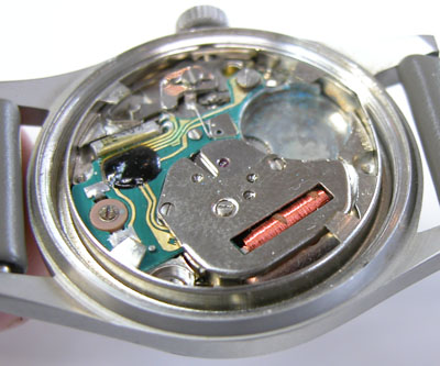 これがムーブメントですが機械時計と錯覚しそうですがクォーツです。