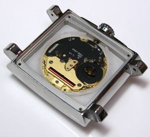 ムーブメントを戻して電池格納部をチェックします。バックルをDバックルに交換します。
