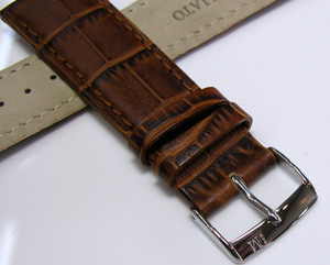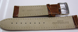 かなりワイドな革ベルトです。こういう革ベルトは国内バンドメーカーでは作られていないですね・・・。モレラートの22mm幅でストレートな革ベルト。