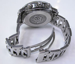ステンレス無垢バンドに三つ折れダブルロック。