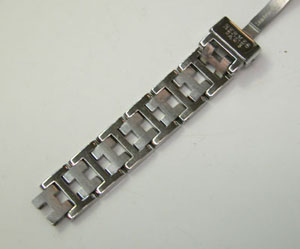 ステンレス無垢バンドに三つ折れバックル。