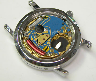 綺麗になったケースにムーブメントを戻して電池格納部をチェックします。’