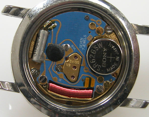 綺麗になったケースにムーブメントを戻して電池格納部をチェックします。
