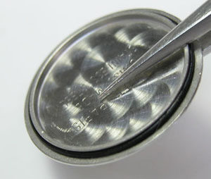 裏蓋は”はめ込みタイプ”でラグ部の汚れもチェックします。