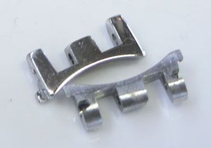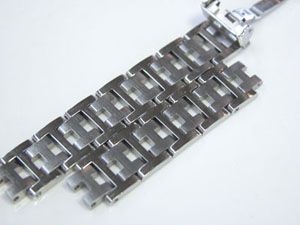 ステンレス無垢バンドに三つ折れバックル。