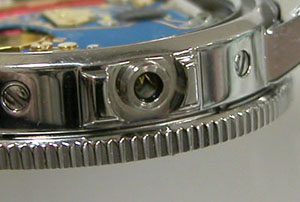 裏蓋はスクリューバックで右が裏蓋記載。