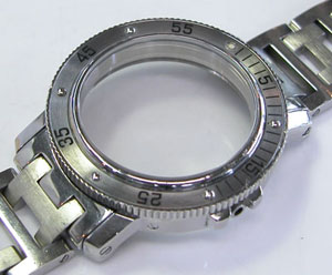 ステンレス板巻きバンドに三つ折れバックル。