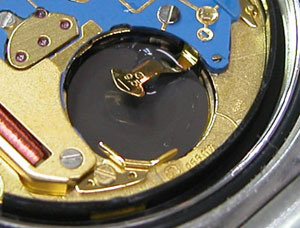 綺麗になったケースにムーブメントを戻して電池格納部をチェックします。