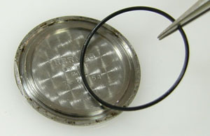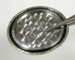 裏蓋のサビも落として洗浄して綺麗になったところで。パッキンにシリコン塗布をして裏蓋に戻し。