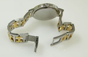 ステンレス無垢バンドにブレスバックル。