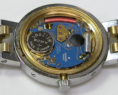 綺麗になったケースにムーブメントを戻して電池格納部をチェックします。
