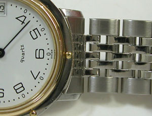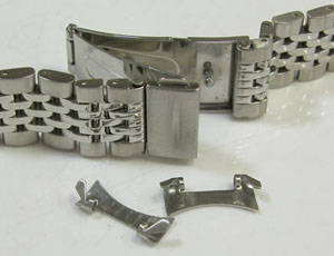 偶然あったステンレス無垢バンドに三つ折れプッシュバックル。そして「弓環」タイプ。