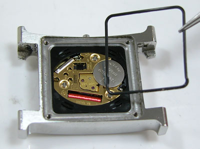 綺麗になったケースにムーブメントを戻して電池格納部をチェックします。
