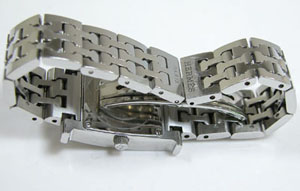 バックルの向きをチェックします。裏蓋は4本ネジで留まっていて。