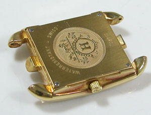 裏蓋は4本ネジで留まっていて右が裏蓋記載。